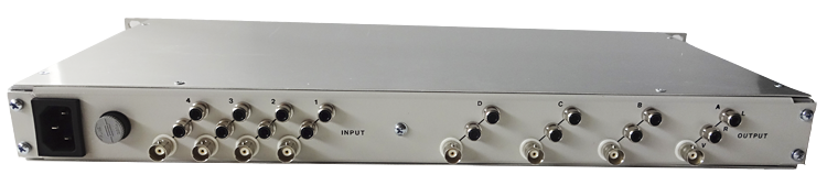 The RSPB-4x4S matrix switcher connects multiple inputs to multiple outputs using complex array matrices. Any input can be assigned to one, two, or more, or all outputs.